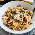 Beef and Bowtie Pasta with Alfredo Sauce is a flavorful dish that’s easy to make and perfect for any occasion. With simple ingredients like bowtie pasta, ground beef, and creamy Alfredo sauce, this recipe stands out as both satisfying and versatile. Feel free to customize it according to your preferences. Whether it’s a weeknight dinner or meal prep for busy days ahead, this dish is sure to please everyone at your table. Enjoy!