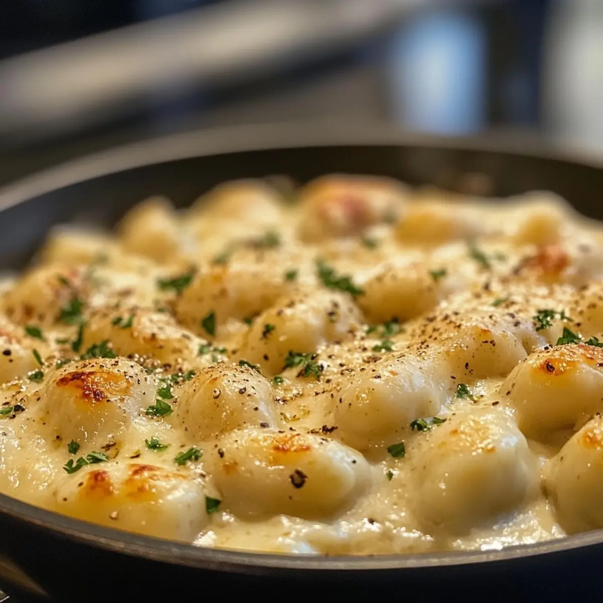 - Add the potato gnocchi to the creamy sauce and cook for 4-5 minutes until tender.