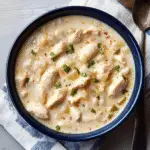 Creamy white chili with chicken is the ultimate comfort food, perfect for chilly evenings or family gatherings. This delightful dish features tender chicken and creamy cannellini beans simmered in a rich broth with a hint of spice, creating a warm hug in every bowl. Top it off with fresh cilantro and a squeeze of lime for a burst of flavor that will have everyone asking for seconds. Easy to prepare and packed with deliciousness, this creamy white chili is sure to become a favorite recipe in your kitchen.