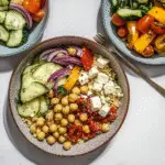 Preparing the Mediterranean Chickpea and Feta Power Bowl takes about 20 to 30 minutes. If you use canned chickpeas, the preparation time decreases since you won’t have to cook them from scratch. Chopping vegetables may take some time, but you can speed up the process by using pre-cut veggies or a food processor. This quick meal is perfect for busy weeknights or meal prep.