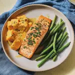 Maple-Chipotle Salmon with Sweet Potato and Green Beans is not just a dish; it’s a flavor-packed whirlwind that dances on your taste buds. Picture this: succulent salmon fillets, kissed by the sweet embrace of maple syrup and the fiery punch of chipotle, all served alongside roasted sweet potatoes and vibrant green beans. The aroma wafting from your kitchen will have your neighbors peeking in, wondering what culinary magic you’re conjuring up today. For more inspiration, check out this Moroccan Spiced Salmon recipe.
