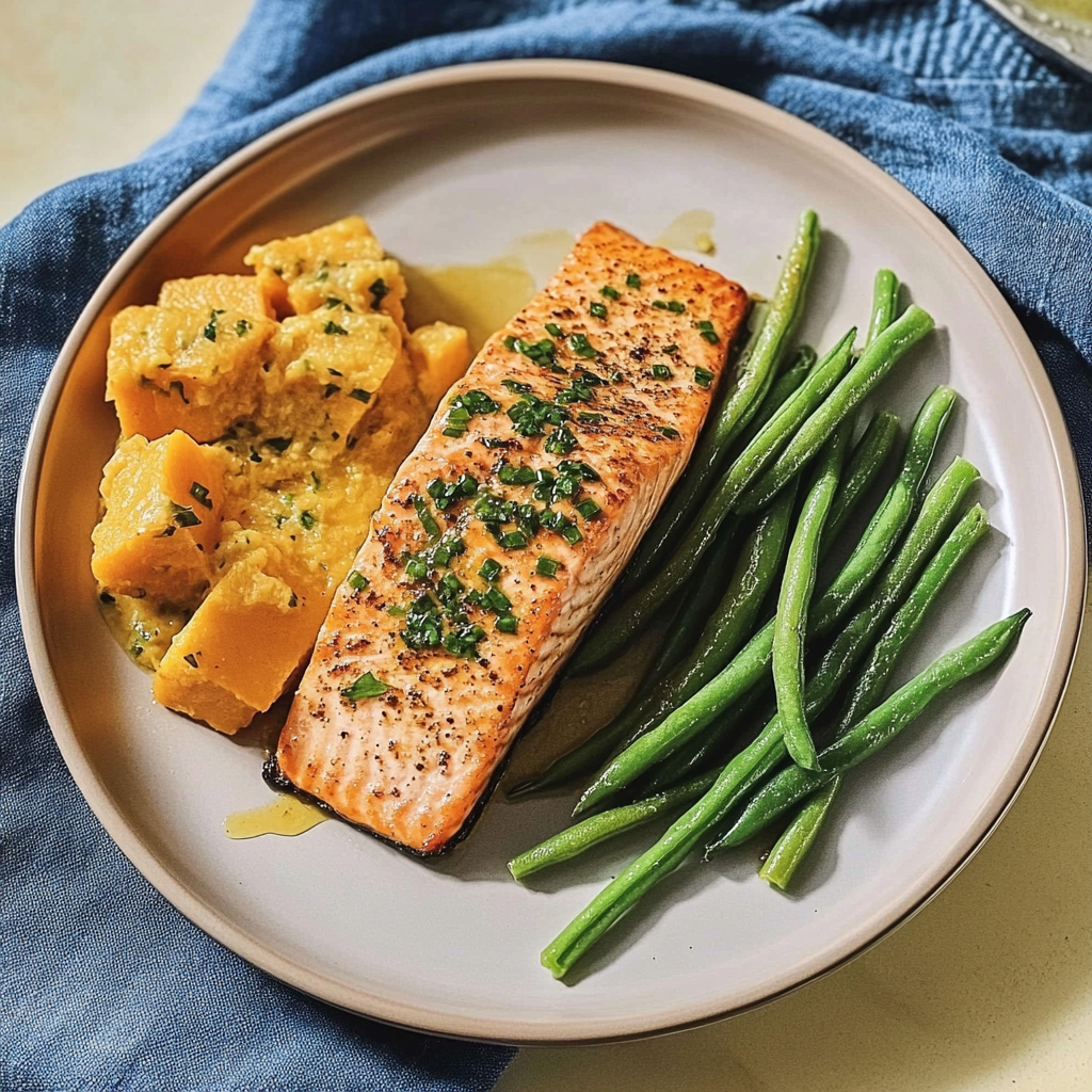 - Maple-Chipotle Salmon with Sweet Potato and Green Beans is incredibly easy to prepare, making weeknight dinners stress-free.