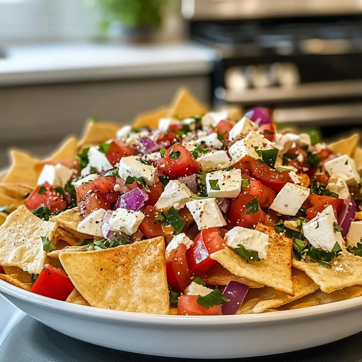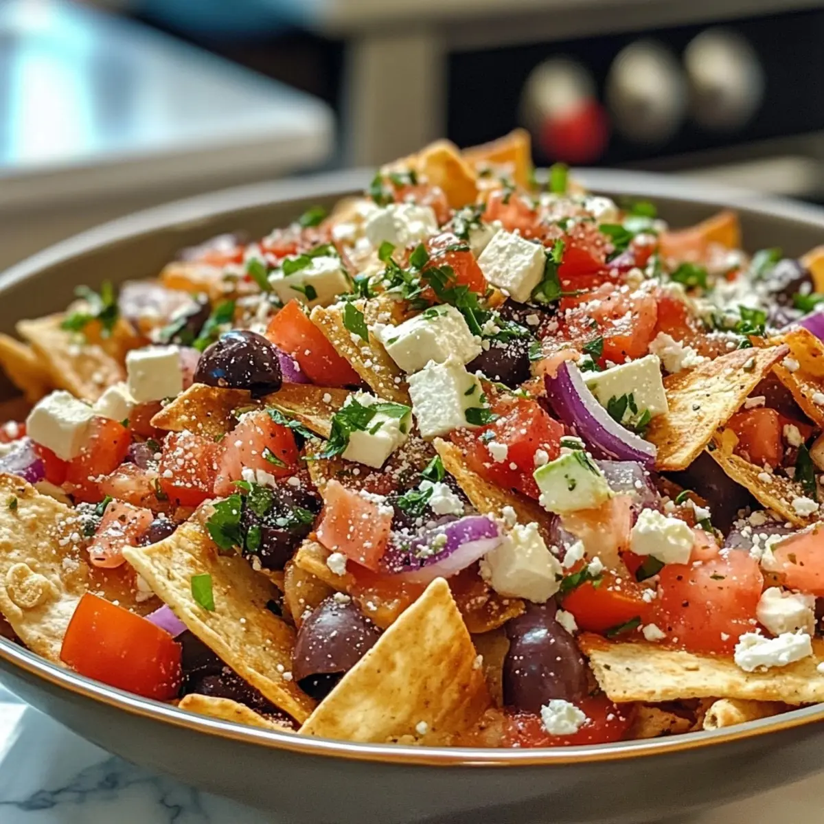 - Serve Immediately: Enjoy your crispy Greek nachos warm for the best taste and texture—perfect for snacking and sharing!