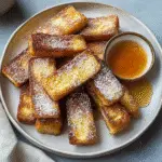 Transfer your crispy Cinnamon French Toast Sticks onto plates and drizzle with maple syrup or sprinkle with powdered sugar for that extra sweetness.