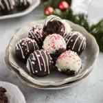 Dip each chilled ball into melted white chocolate using forks or toothpicks, making sure they’re fully coated. Return them to your parchment-lined baking sheet and immediately sprinkle crushed candy canes on top before the chocolate sets.