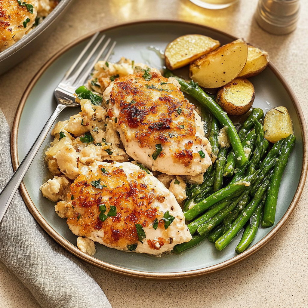 Parmesan-Crusted Chicken Sheet Pan Dinner is a mouthwatering one-pan meal that effortlessly combines juicy chicken breasts with vibrant roasted vegetables, all topped with a crispy Parmesan crust. This easy-to-make dish is perfect for busy weeknights or family gatherings, offering a satisfying blend of flavors and textures. With minimal cleanup and customizable ingredients, this recipe is sure to become a household favorite.