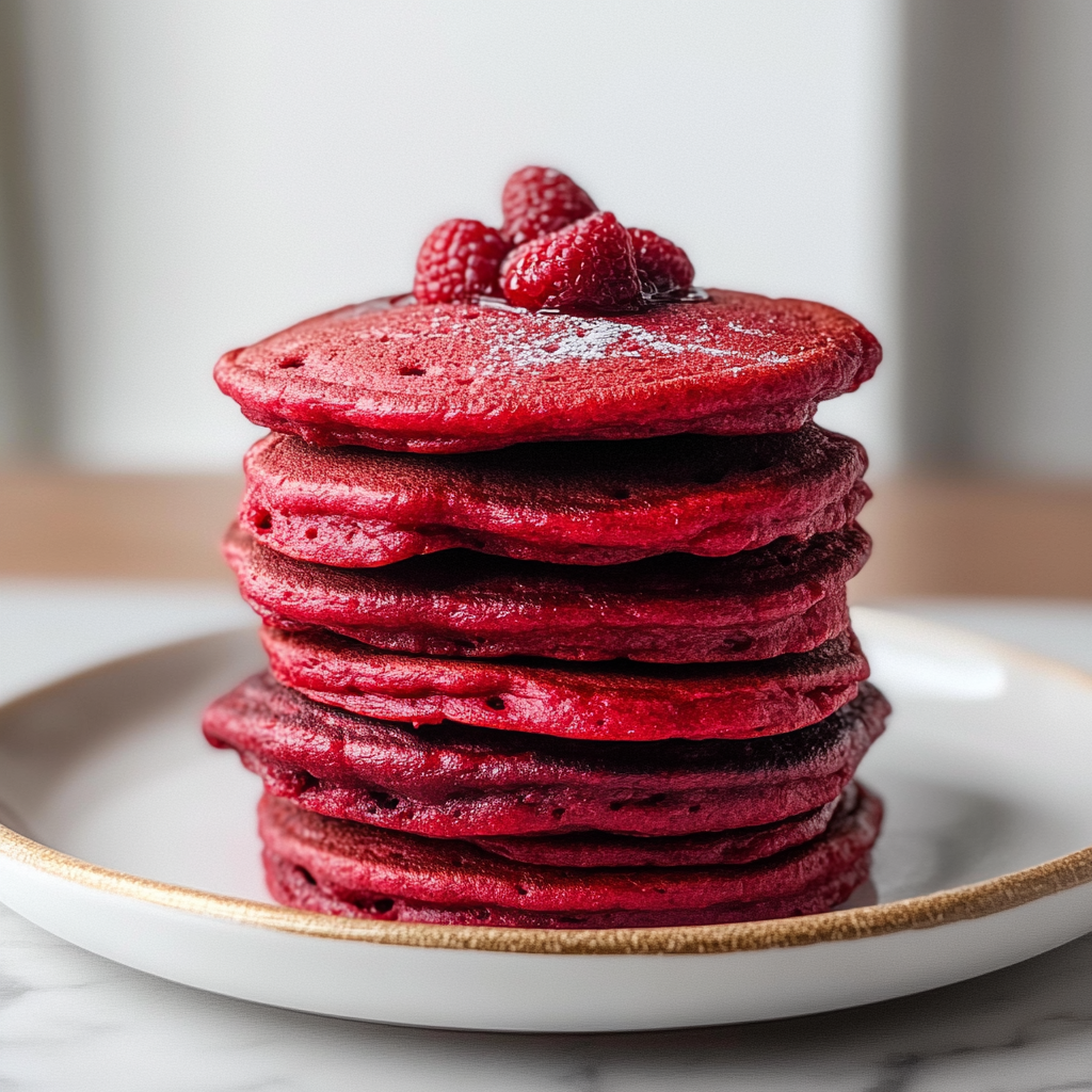 Red Velvet Pancakes pair beautifully with various toppings. Traditional favorites include cream cheese frosting or whipped cream for added sweetness. Fresh berries like strawberries or raspberries add a tangy contrast. You can also drizzle maple syrup or chocolate sauce over the pancakes for an extra indulgent touch. Get creative and mix different flavors to find your perfect combination!