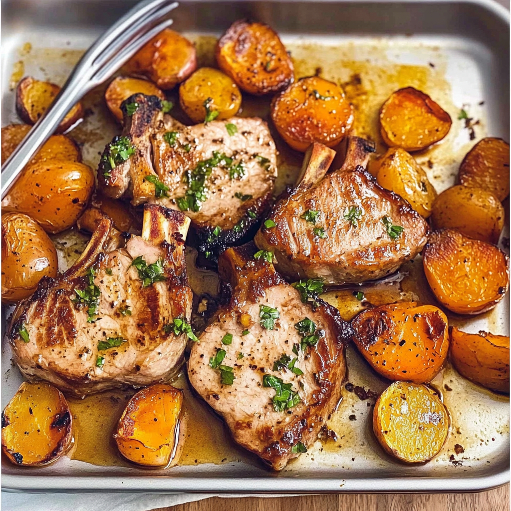 Pop the sheet pan into your preheated oven. Roast for about 25-30 minutes or until the pork reaches an internal temperature of at least 145°F (63°C) and those veggies are fork-tender.