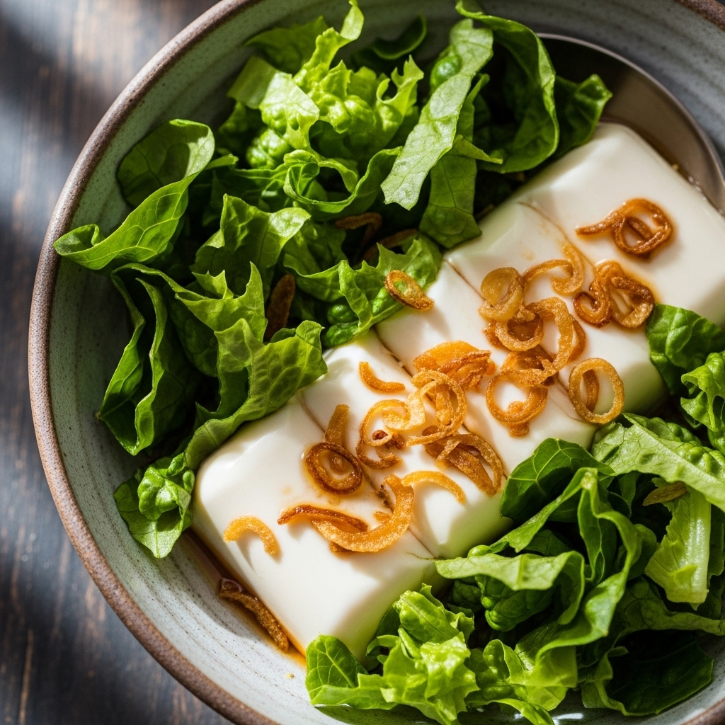 Silken Tofu With Crunchy Lettuce and Fried Shallots pairs wonderfully with various dishes. It complements Asian-inspired meals such as stir-fried vegetables, rice noodles, or even grilled meats. For a lighter option, serve it alongside a refreshing cucumber salad or miso soup. This versatility allows you to incorporate it into many meals throughout the week. For more inspiration, check out this cozy cabbage soup recipe recipe.