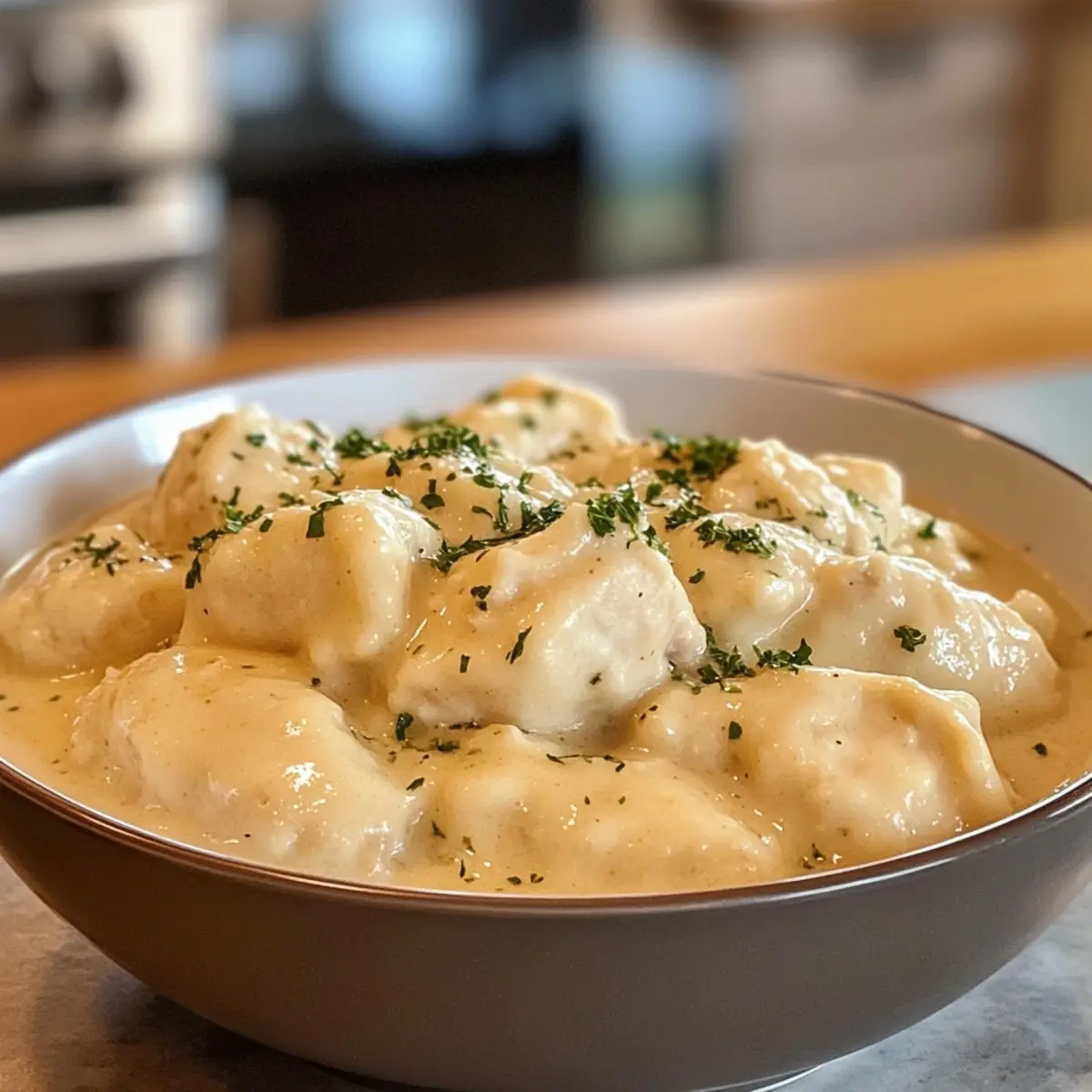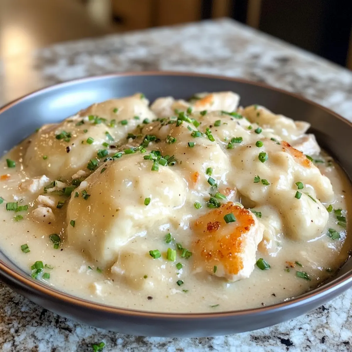 Flavorful: The combination of seared chicken and fluffy dumplings in savory broth creates a rich, mouthwatering experience.