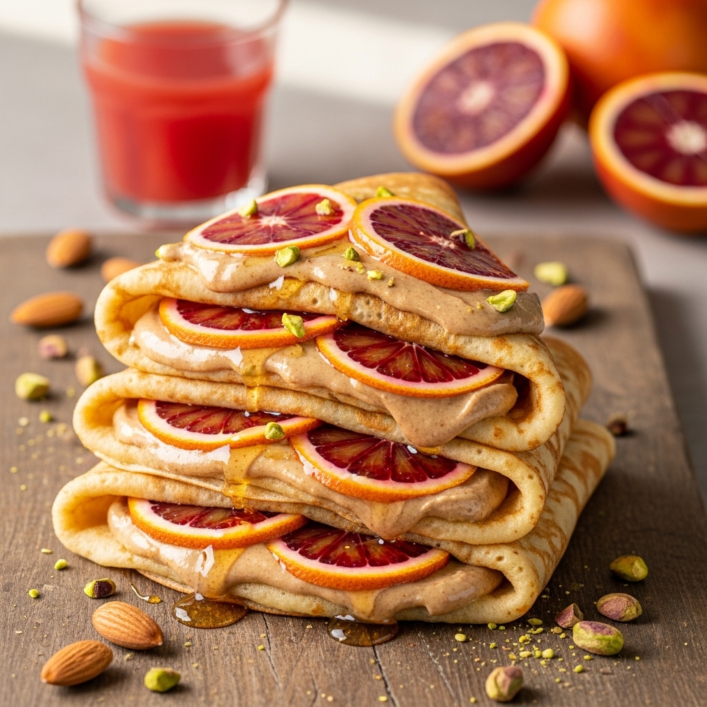 Irresistible Blood Orange & Almond Butter Breakfast Crepes