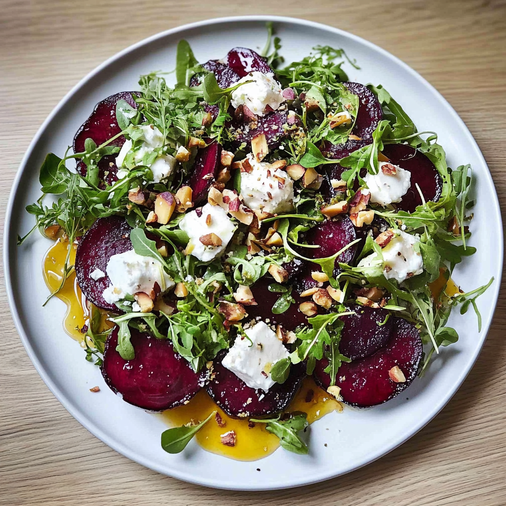 Delightful Roasted Beet Salad with Goat Cheese & Pistachios