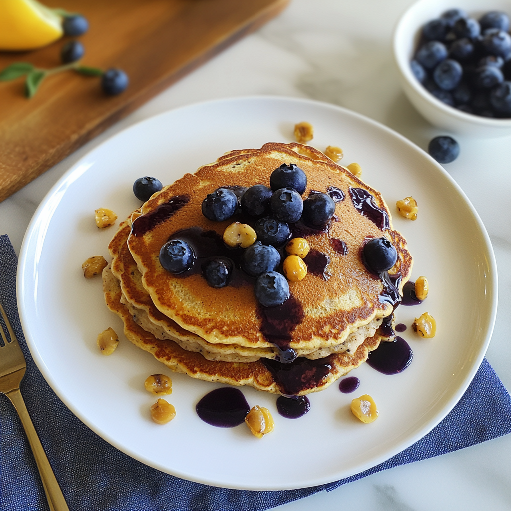 Delightful Blue Corn Pancakes with Blueberry Thyme Syrup