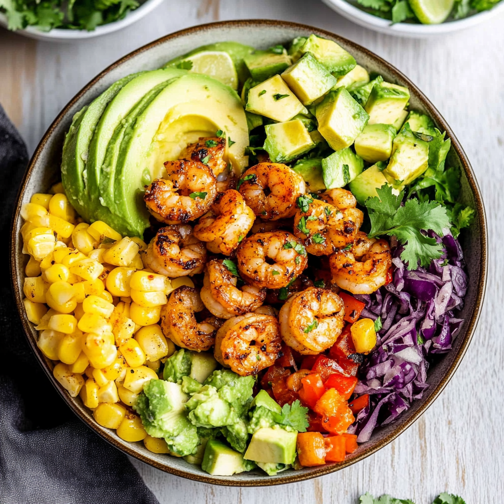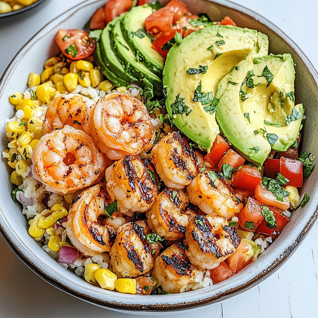 Delicious Grilled Shrimp Bowl with Avocado & Corn Salsa