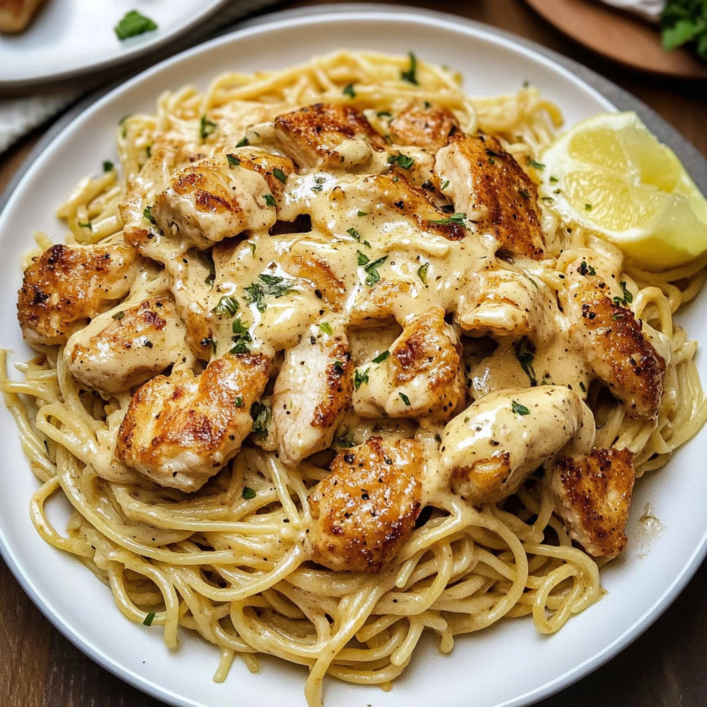Creamy Garlic Parmesan Chicken & Cheesy Spaghetti Delight
