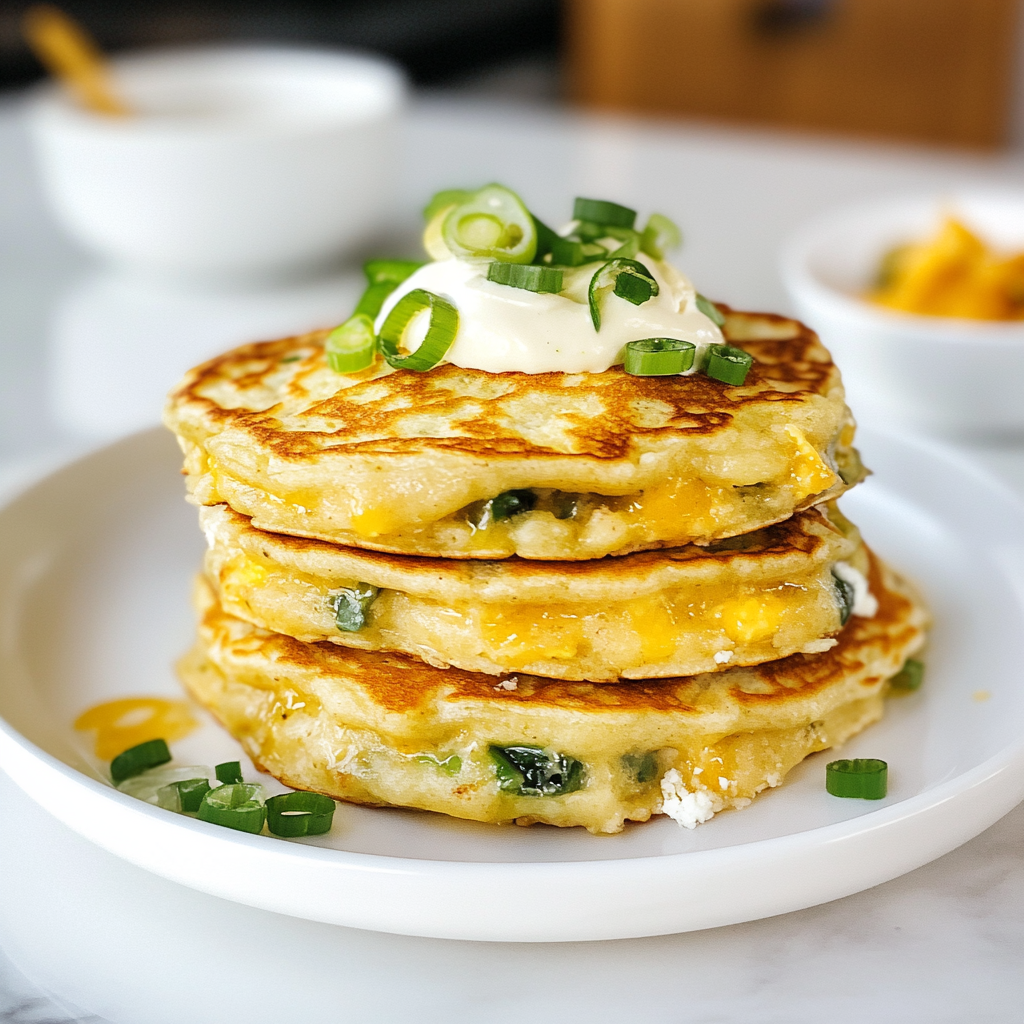 Fluffy Savory Cottage Cheese & Green Onion Protein Pancakes