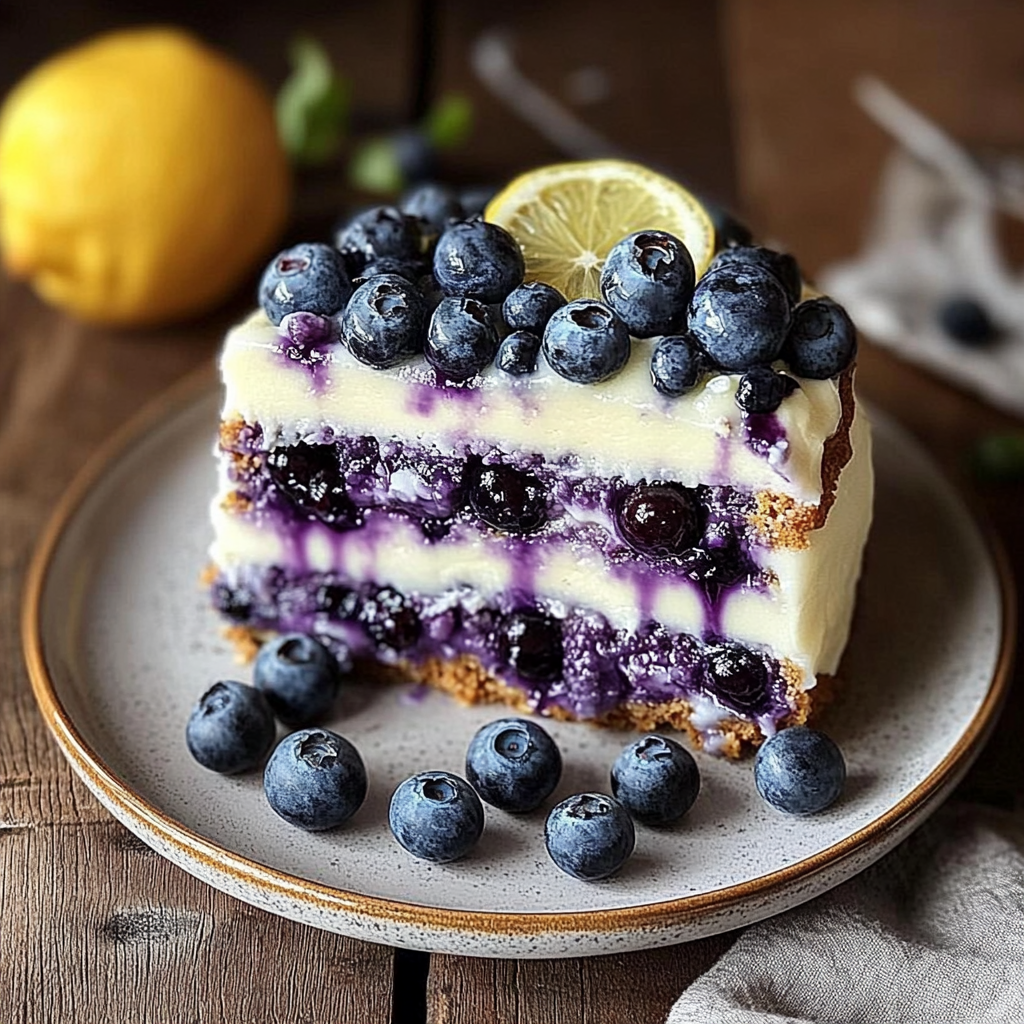 Irresistible No-Bake Lemon Dazzling Blueberry Cream Cake