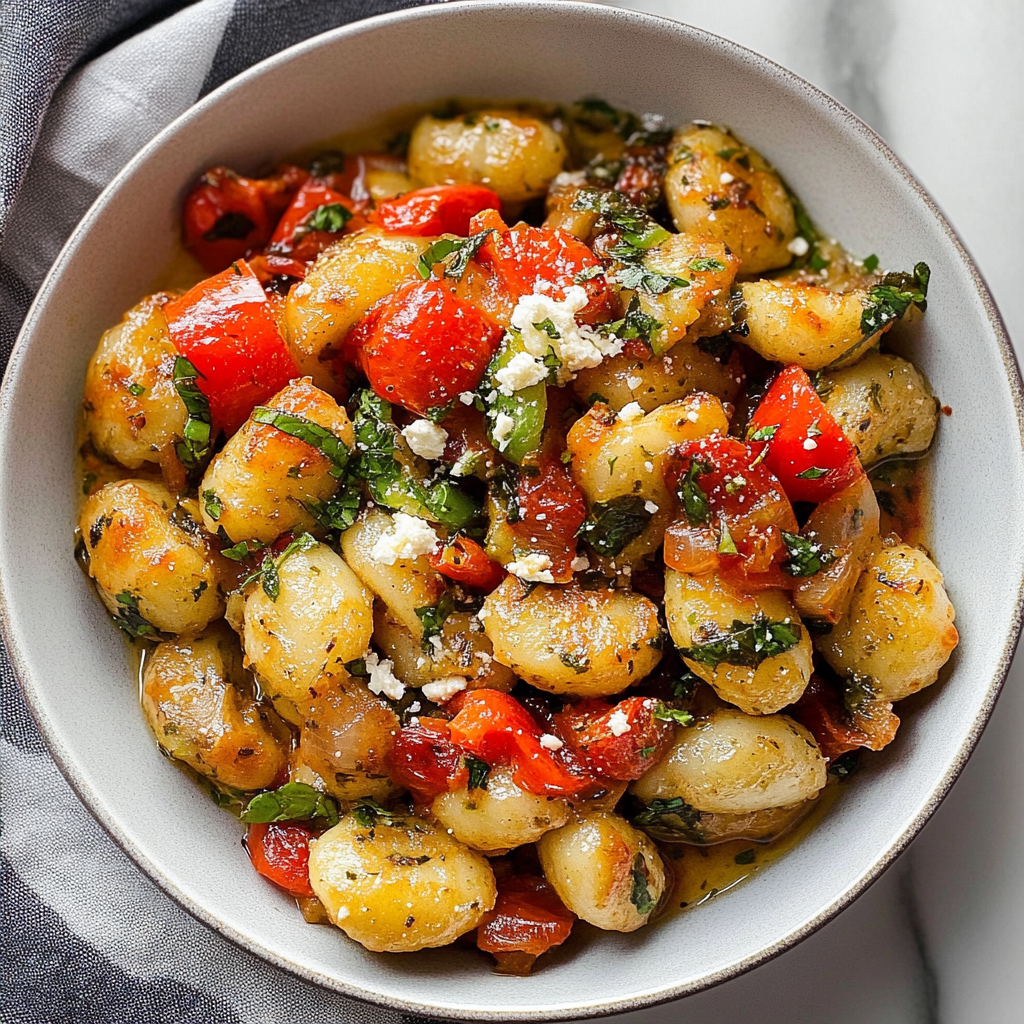 Irresistible Sheet Pan Gnocchi with Roasted Peppers & Feta