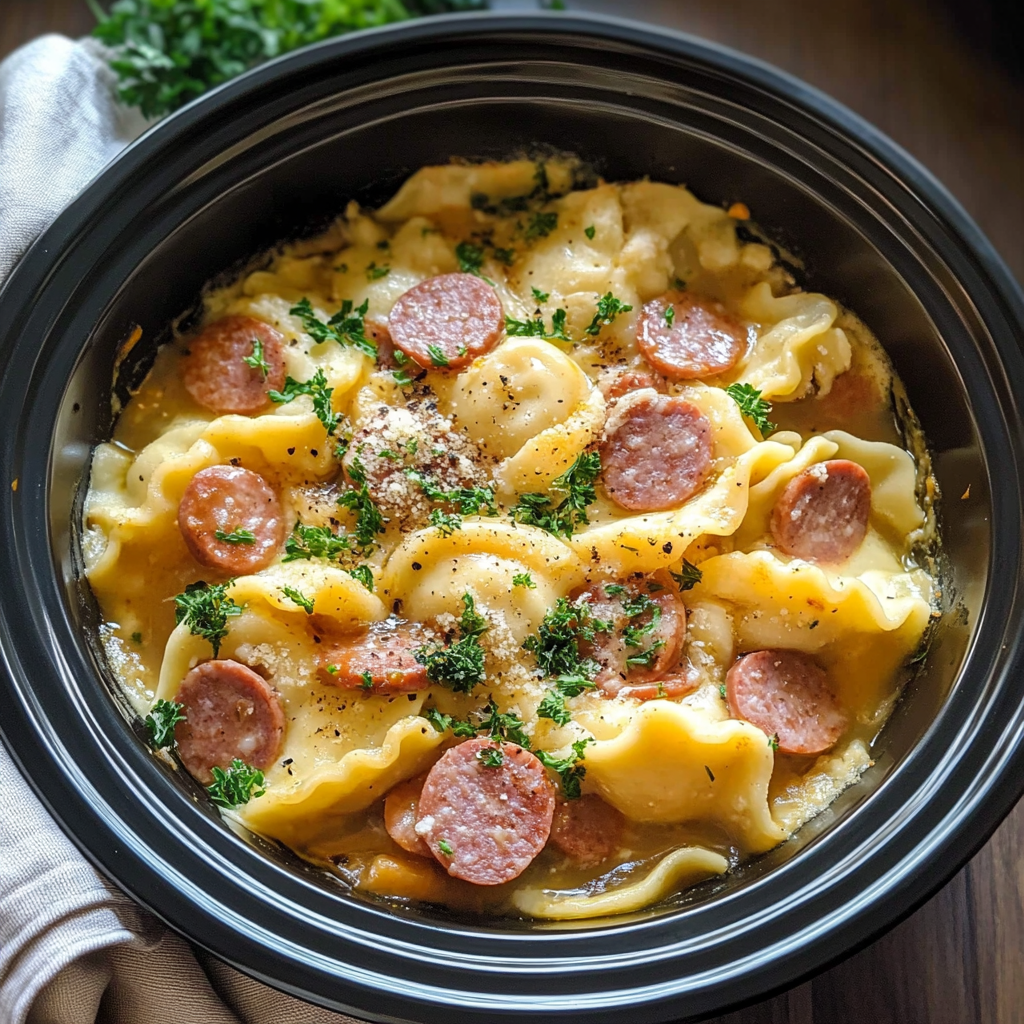 Irresistible Crockpot Pierogi Casserole with Kielbasa