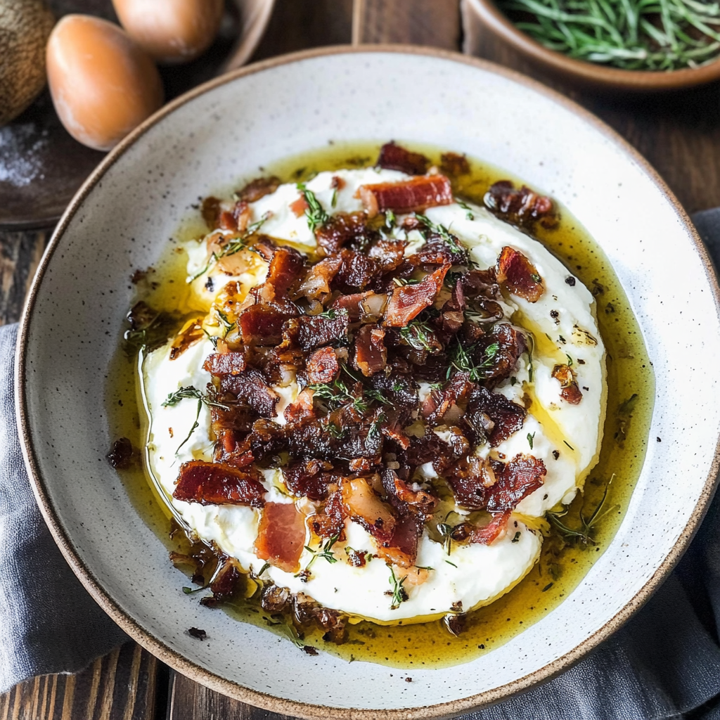 Whipped Goat Cheese with Warm Candied Bacon Delight
